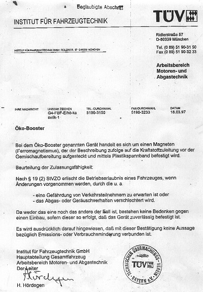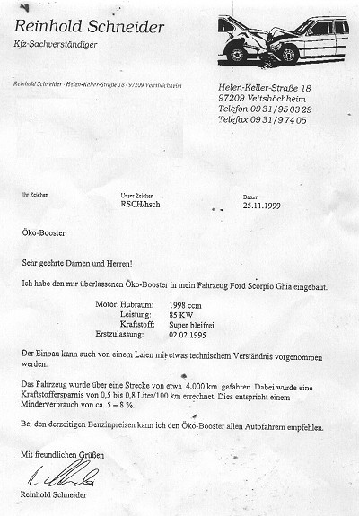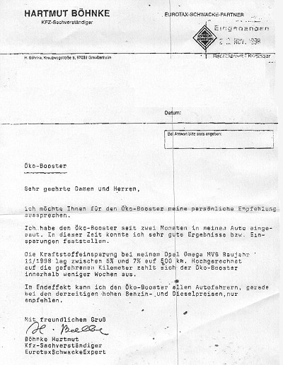 Durch den Einsatz des Öko-Booster wird die Verbrennung des Kraftstoffes deutlich